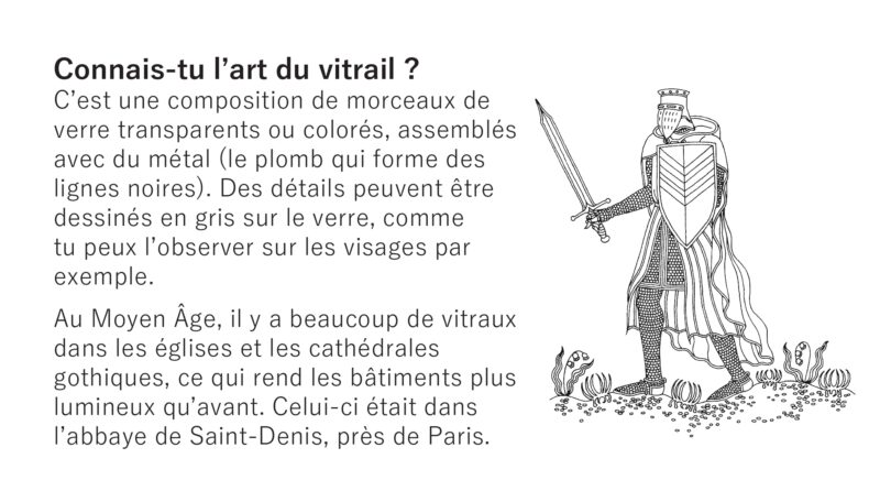 Après cette plongée dans l’art Gothique, ils se dirigent vers un atelier créatif où ils collaborent à l’élaboration d’un grand vitrail en aquarelle. Ensemble, ils créent une œuvre collective inspirée par les éléments de l’exposition.